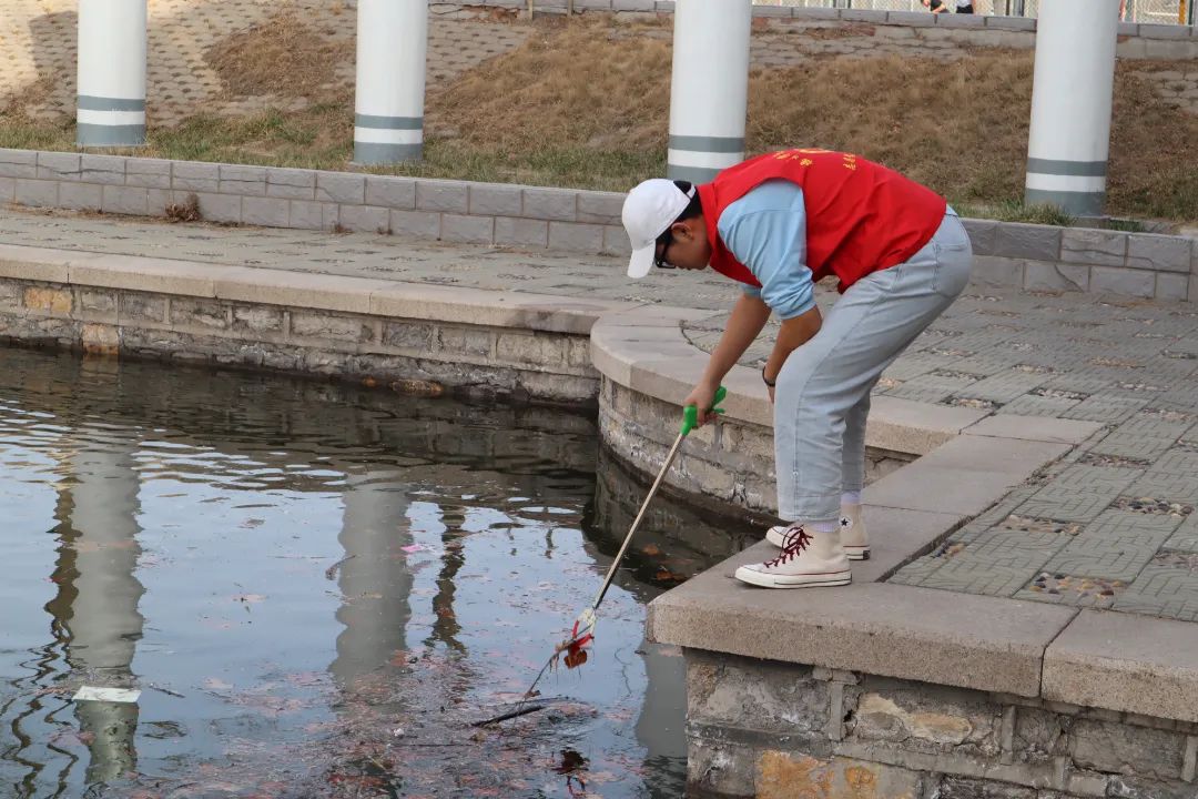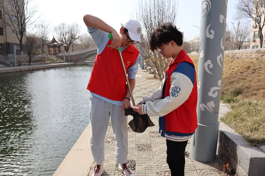 活动现场,志愿者们分工有序,身着红马甲,拿着垃圾袋、垃圾钳等工具,沿着濯锦池和儒风广场,仔细地清理散落在各地的生活垃圾,丢弃在草丛、沙石中的白色垃圾、果皮等杂物,并将垃圾集中处理,真正给河岸环境进行了一次“大扫除”。同时,志愿者们还向行人们宣传环保理念,呼吁大家行动起来,及时制止和劝导向沿河岸边、河内倒垃圾、扔杂物等不文明行为,引导人们保护母亲河、爱护生态环境。