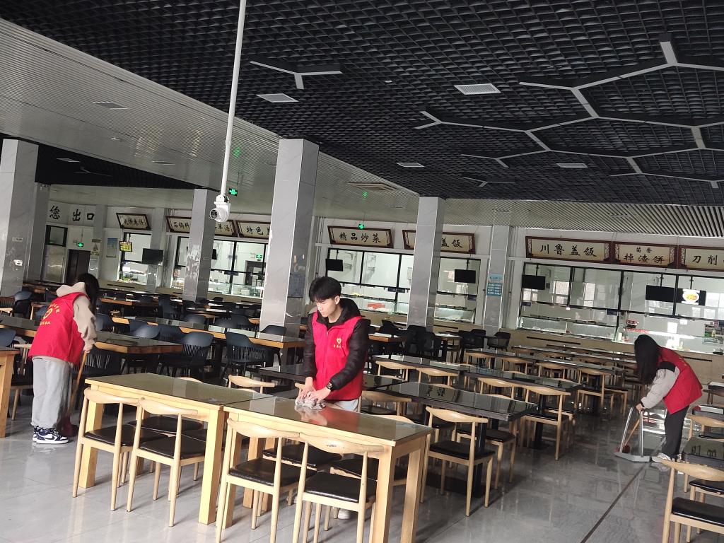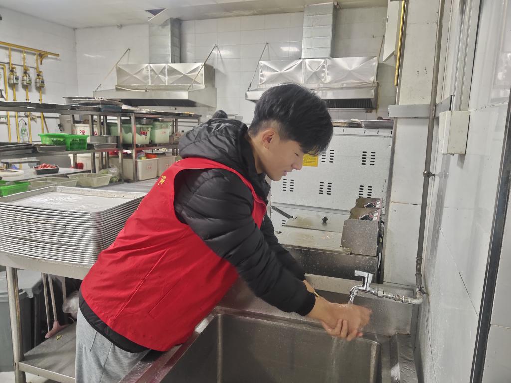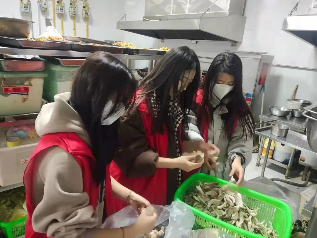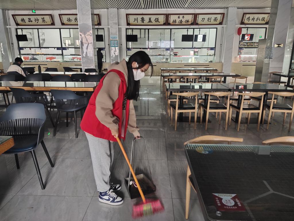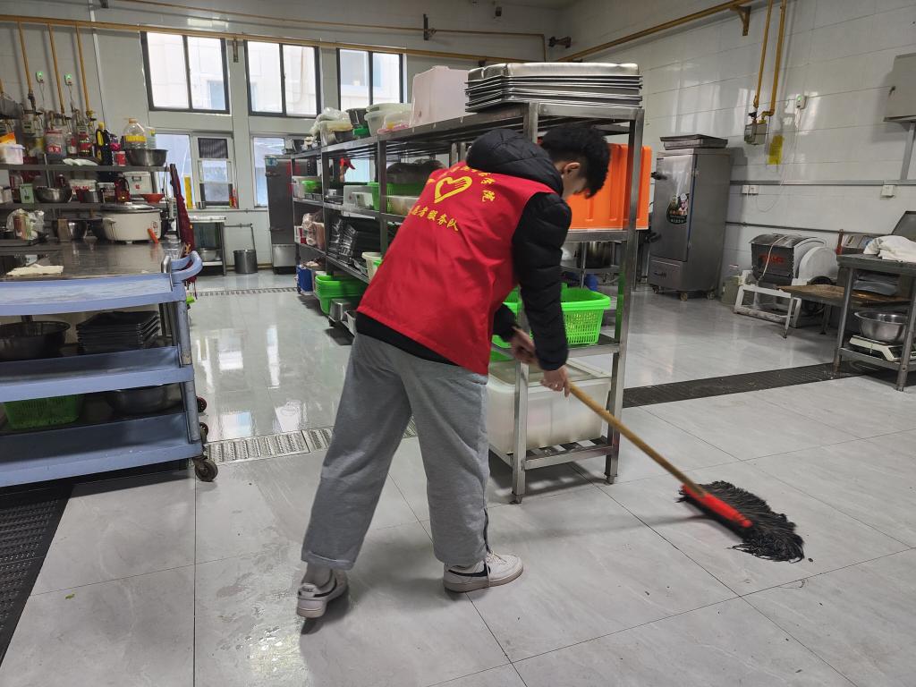 本次活动由太阳成集团tyc151cc青志部志愿者组织,志愿者们先后进行了餐厅后勤饮食服务工作及学院公共区域清洁。志愿者们分工合作,与餐厅后勤工作人员择菜、拖地,随后至太阳成集团tyc151cc帮助保洁阿姨对学院走廊完成清扫工作。