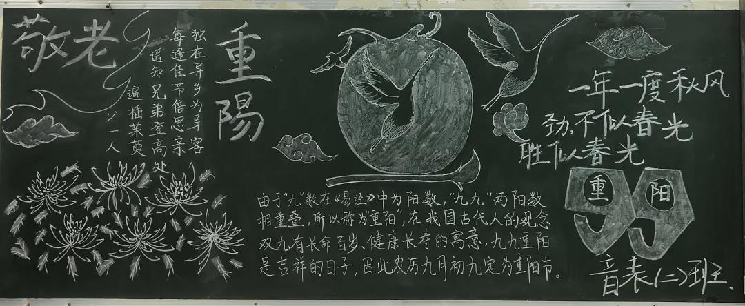 10月9日太阳成集团tyc151cc以班级为单位开展了“九九重阳节,浓浓敬老情”主题黑板报活动。各班积极准备了黑板报内容,弘扬敬老爱老传统美德,提高了同学们投身于实践的热情,增加了同学们的获得感与参与感。活动结束后,从众多黑板报作品中选出了3版优秀作品。