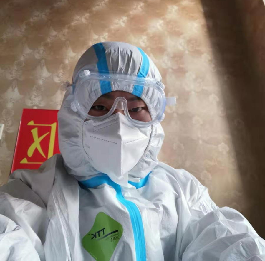 他在河北省张家口市宣化区西草市社区做志愿者。在防疫志愿服务中他的工作是:卡口执勤,负责登记核酸检测信息。在本次疫情突发的河北地区,各个城市响应号召开始实行封闭管理,并对全体人员做核酸检测。