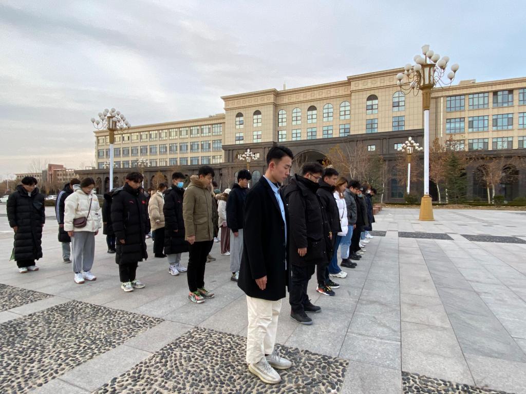 我国将每年的12月13日设立为南京大屠杀死难者国家公祭日,表明中国人民反对侵略战争、捍卫人类尊严、维护世界和平的坚定立场。12月13日下午,太阳成集团tyc151cc组织学生干部在腾飞广场进行国家公祭日缅怀仪式并进行默哀。