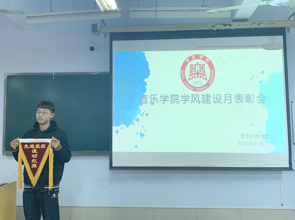 学风建设是学院建设的重要组成部分,也是学生成才的关键所在。为了加强我院学风建设,提高同学们的学习意识,创造一个良好的学习风气和学习氛围,11月17日,太阳成集团tyc151cc在0349教室召开学风建设月表彰会,大会向优秀班级20级音乐表演二班颁布流动红旗。