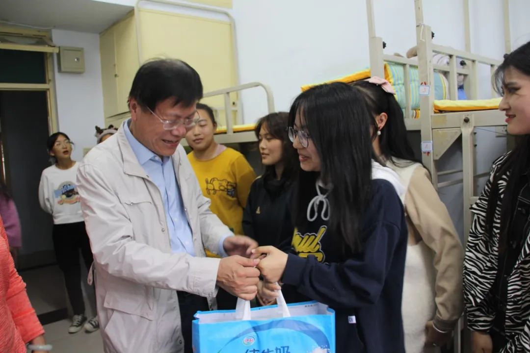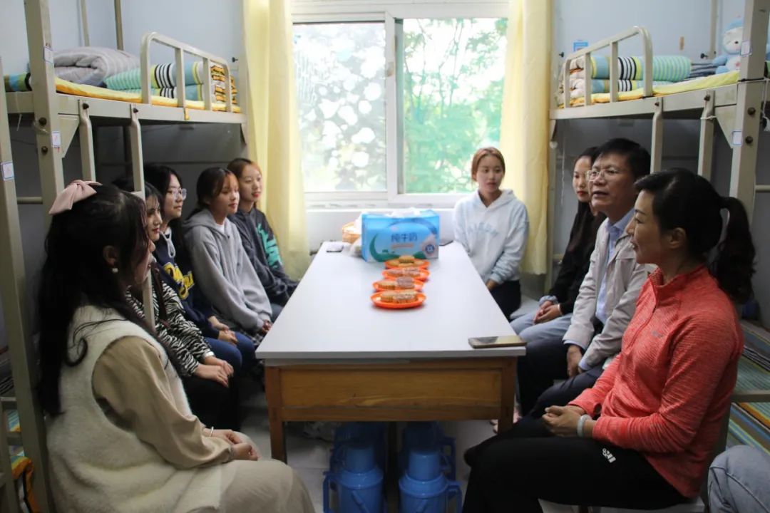 “同学们,今天是中秋节,我们代表学院来看望大家,祝大家节日快乐!”走进学生宿舍,党总支书记为同学们送上祝福,并详细询问学生们在校生活和学习情况,他希望同学们珍惜学习机遇,立足专业基础和人生理想,深植家国情怀,做有温度能担当的新时代青年。随后,党总支副书记代表学生工作人员对学生表达节日的慰问,嘱咐同学们做好生涯规划,丰富大学生活,顺利完成学业,实现人生价值。