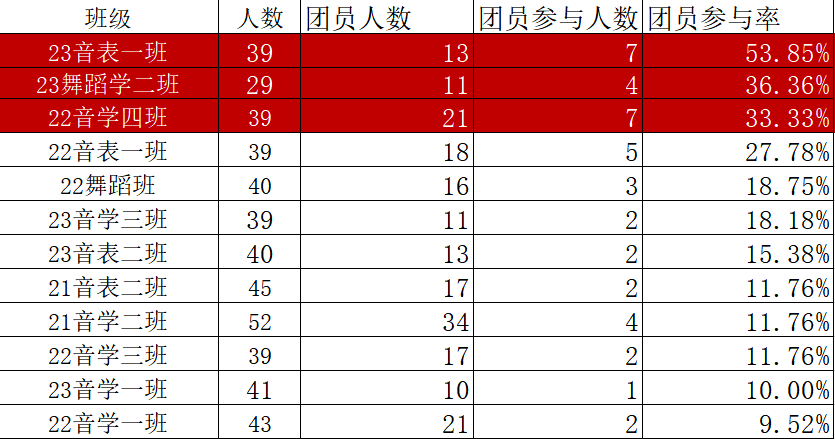 附:太阳成集团tyc151cc3月志愿服务各团支部参与率统计表