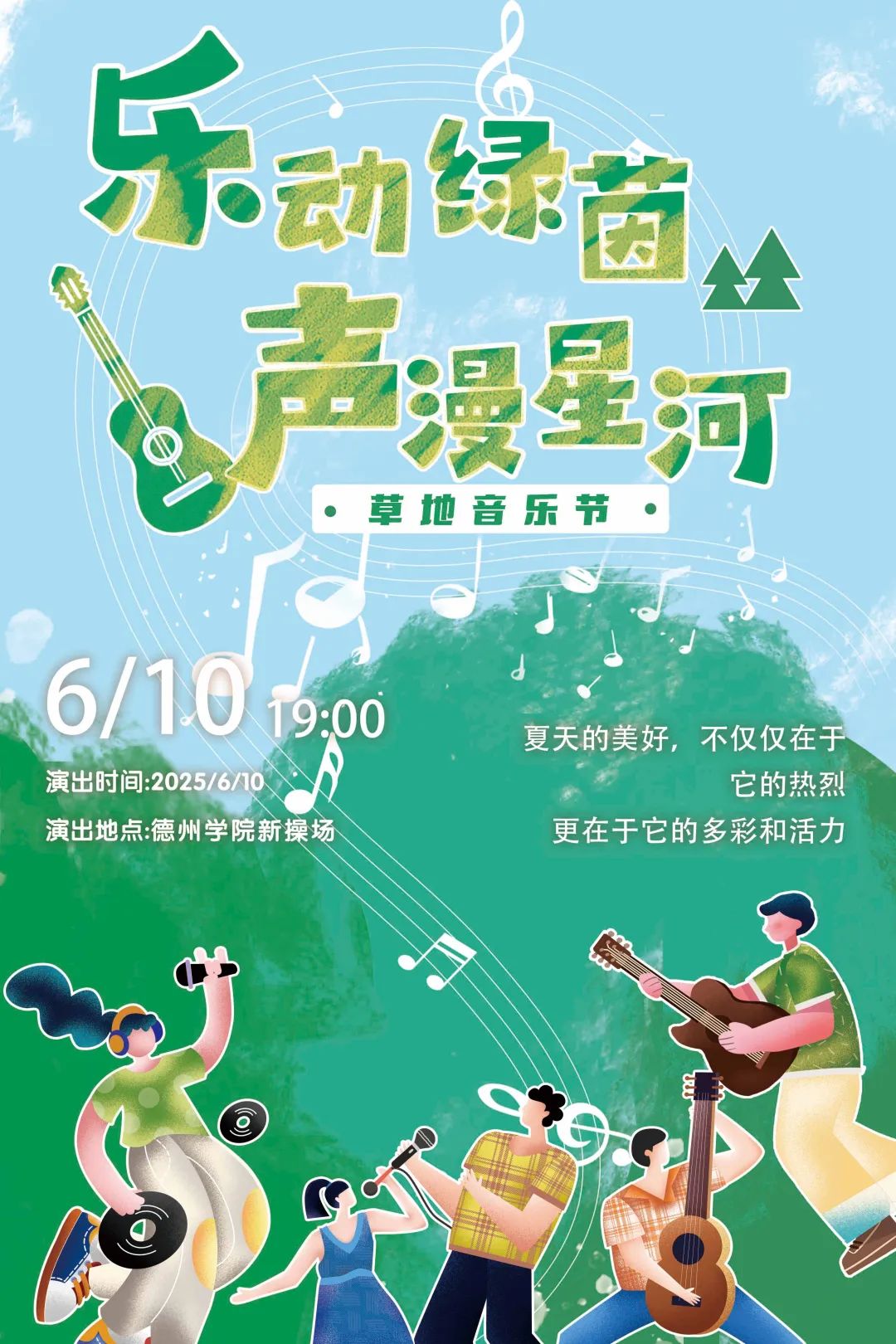 日落晚风,Live再燃!草地音乐节尖叫回归!6月10日晚7点,德院新操场,不见不散!