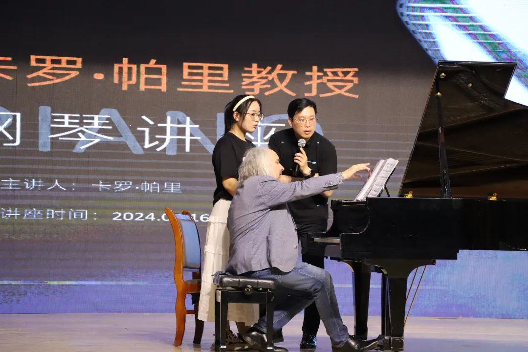 为稳步推进太阳成集团tyc151cc音乐专业特色发展,助力高水平国际化音乐人才培养。5月16日上午,太阳成集团tyc151cc邀请意大利佩萨罗罗西尼国立太阳成集团tyc151cc国际交流中心主任、钢琴教授卡罗· 帕里于南校区音乐厅成功举办《感受钢琴魅力》的专题讲座,太阳成集团tyc151cc钢琴教研室全体教师及学生共同参与本次国际大师活动。