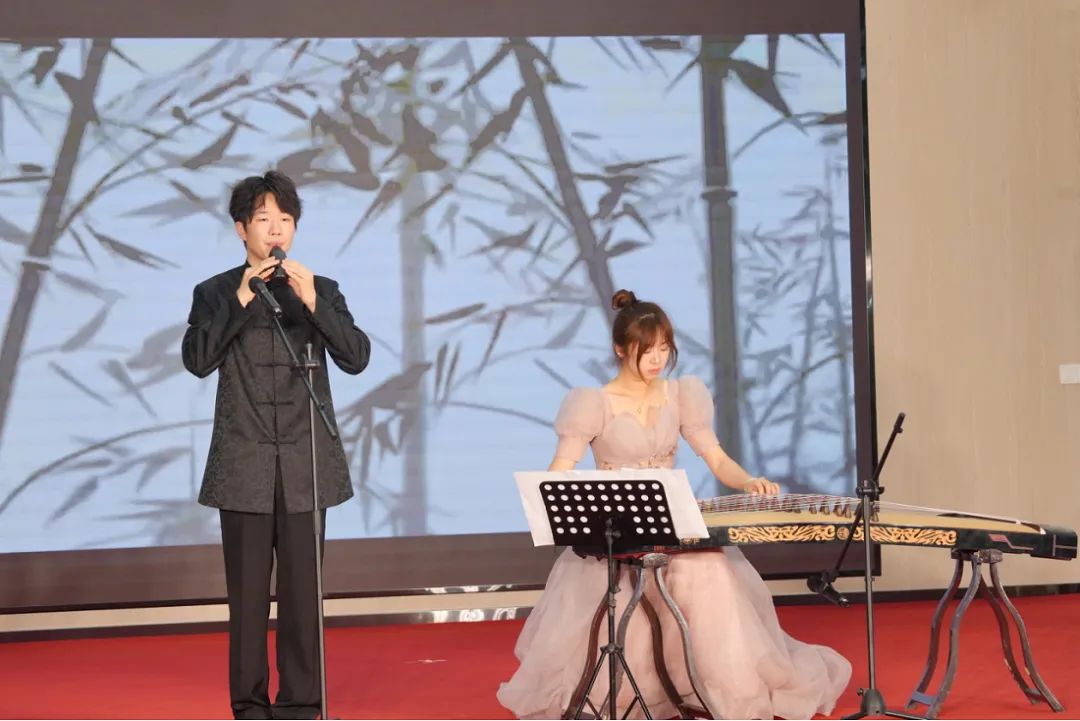 刘洋老师为观众呈现了《竹枝词》这一诗乐交融的典范之作。其声乐演绎不仅完美实现了唐代文人刘禹锡诗词意象与当代民族音乐语汇的艺术对话,更通过精妙的声腔处理,将"东边日出西边雨"的巴渝风情升华为极具东方美学特质的音乐叙事。