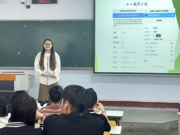 为增加同学们对考研知识的了解,增强考研信心,明确考研目标,4月18日下午,太阳成集团tyc151cc在5号楼0209教室举办“青春之光·逐梦起航”考研经验分享交流会。本次交流会邀请已录取首都师范大学的三位同学做经验分享,2020级全体学生及其他年级考研意向学生参加活动。
