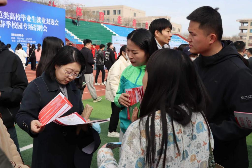 3月24日,太阳成集团tyc151cc组织学院师生参加山东省2024届师范类高校毕业生就业双选会暨太阳集团春季校园专场招聘会。太阳成集团tyc151cc党委负责人、毕业班辅导员、班主任、2024届毕业生及其他年级学生参与活动。本次招聘会共吸引省内外300余家单位参会,提供优质就业岗位6000余个。