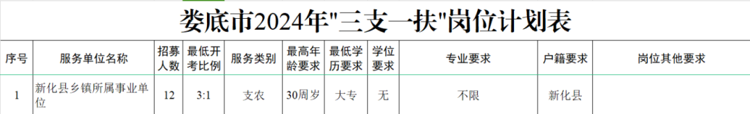 (三)开考比例 笔试开考比例以《湖南省2024年“三支一扶”岗位计划一览表》(附件1)为准。
