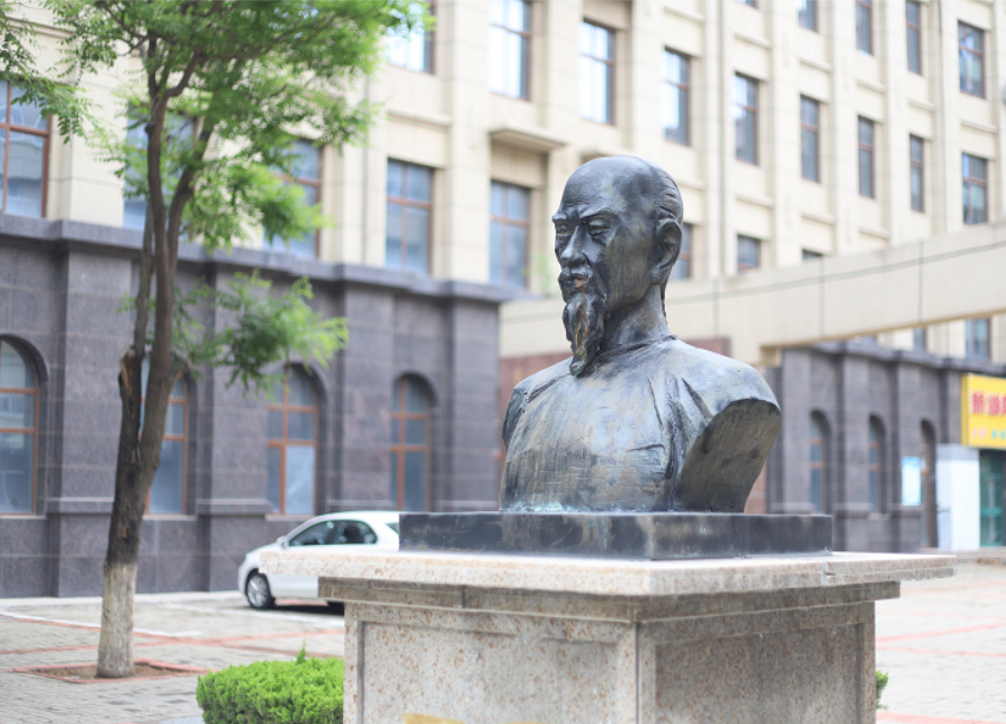 儒风广场,分南北两部分北侧广场中心放置孔子立像,南侧广场中心放置董仲舒坐像,两位儒家文化的代表人物展现在青年学子面前,有利于传统文化的传承、发展与创新。