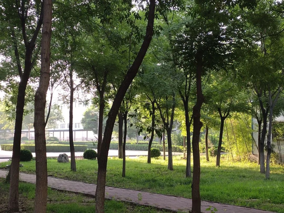 秋实园在鉴塘西侧种植了山楂等果木,每到秋天各类果木硕果累累,象征着学校的育人工作取得了成绩。进一步提高了绿化档次和植被覆盖率。