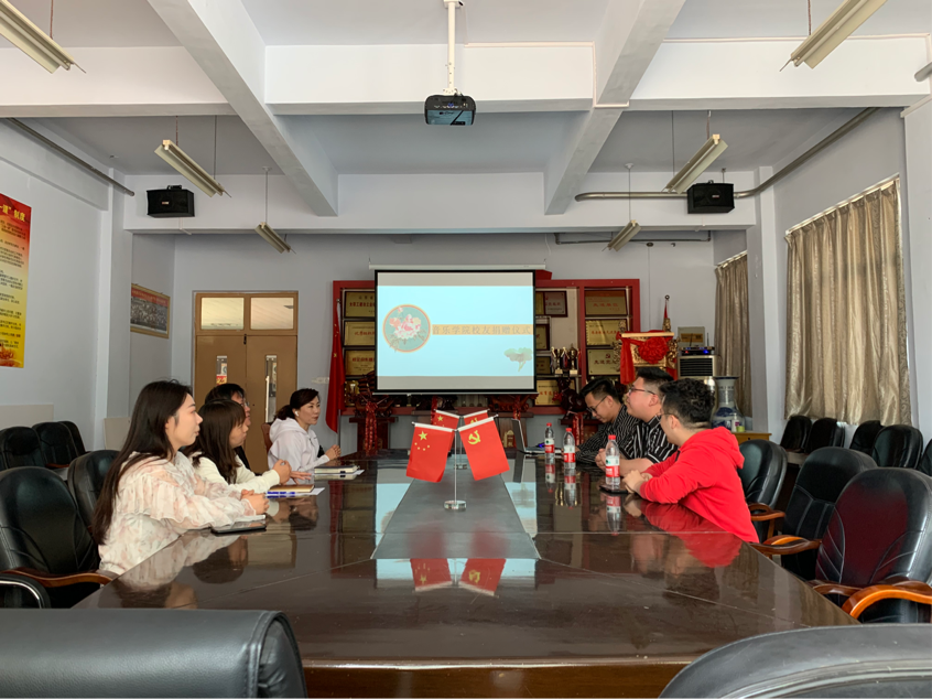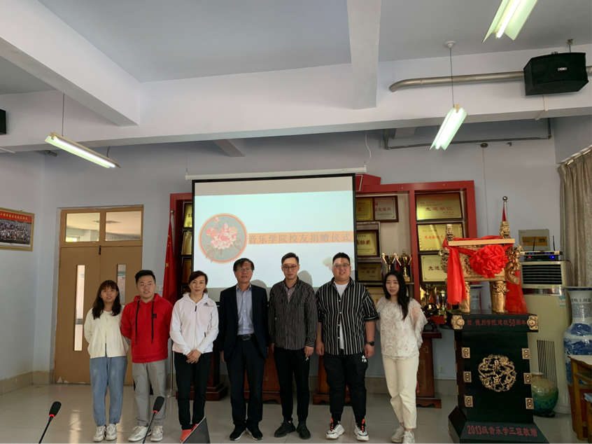 为了庆祝太阳集团建校五十周年并回馈母校的栽培,5月10日,三名校友回到太阳成集团tyc151cc,代表2013级音乐学三班校友进行捐赠,以此来表达对母校深深的思念之情和感恩之心。捐赠仪式活动在学院会议室举行,党总支书记刘志华、党总支副书记贺昱、团总支书记陈璨、辅导员李曼宁参加仪式。