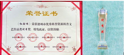 喜报!太阳成集团tyc151cc李琛老师的原创声乐作品《红船颂》荣获德州市优秀科普资源科普文艺作品类优秀奖