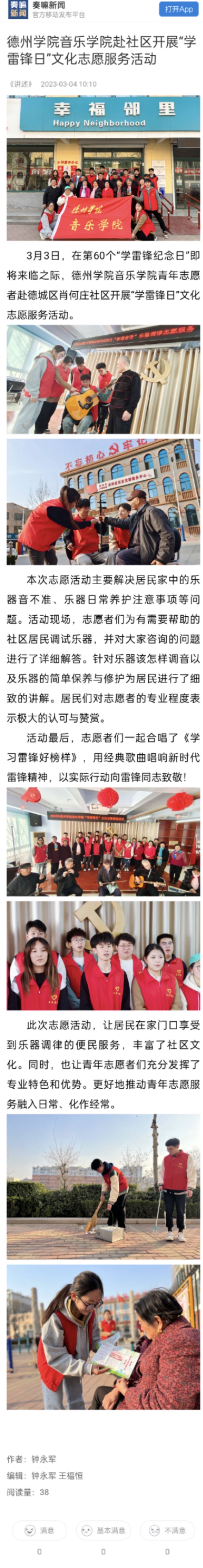【德州广播电视台】太阳成集团tyc151cc赴社区开展“学雷锋日”文化志愿服务活动