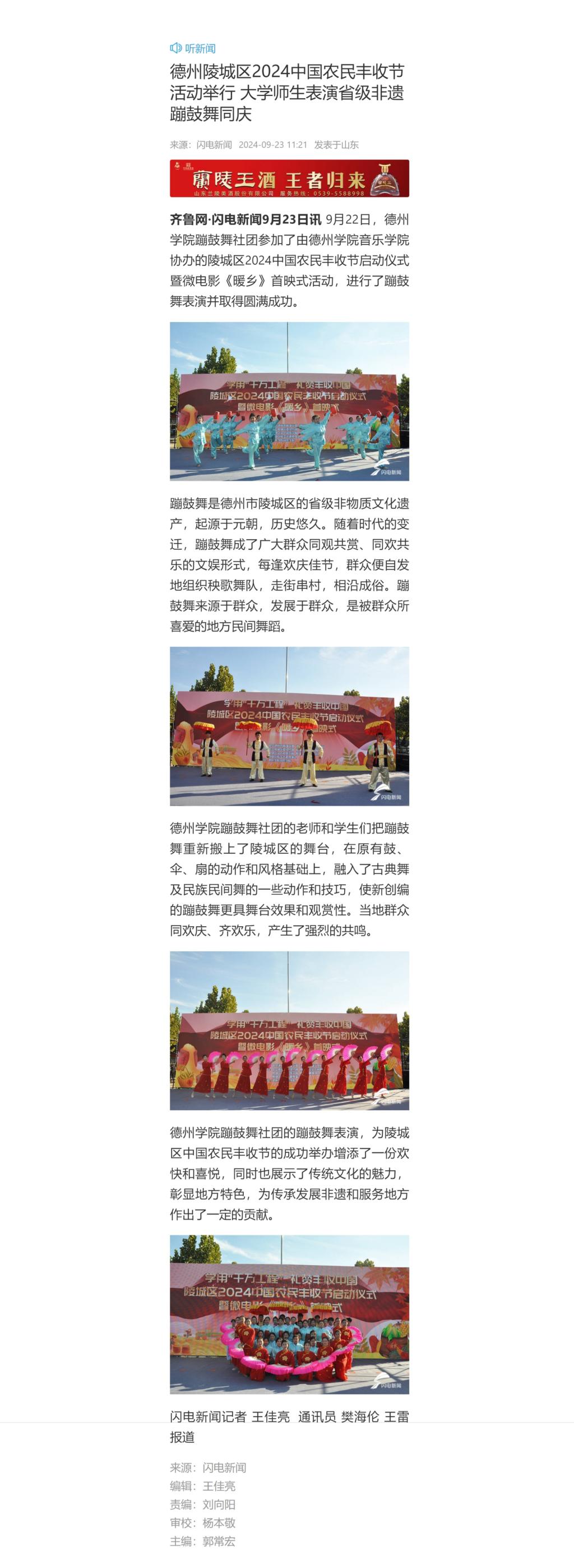 【闪电新闻】德州陵城区2024中国农民丰收节活动举行 大学师生表演省级非遗蹦鼓舞同庆
