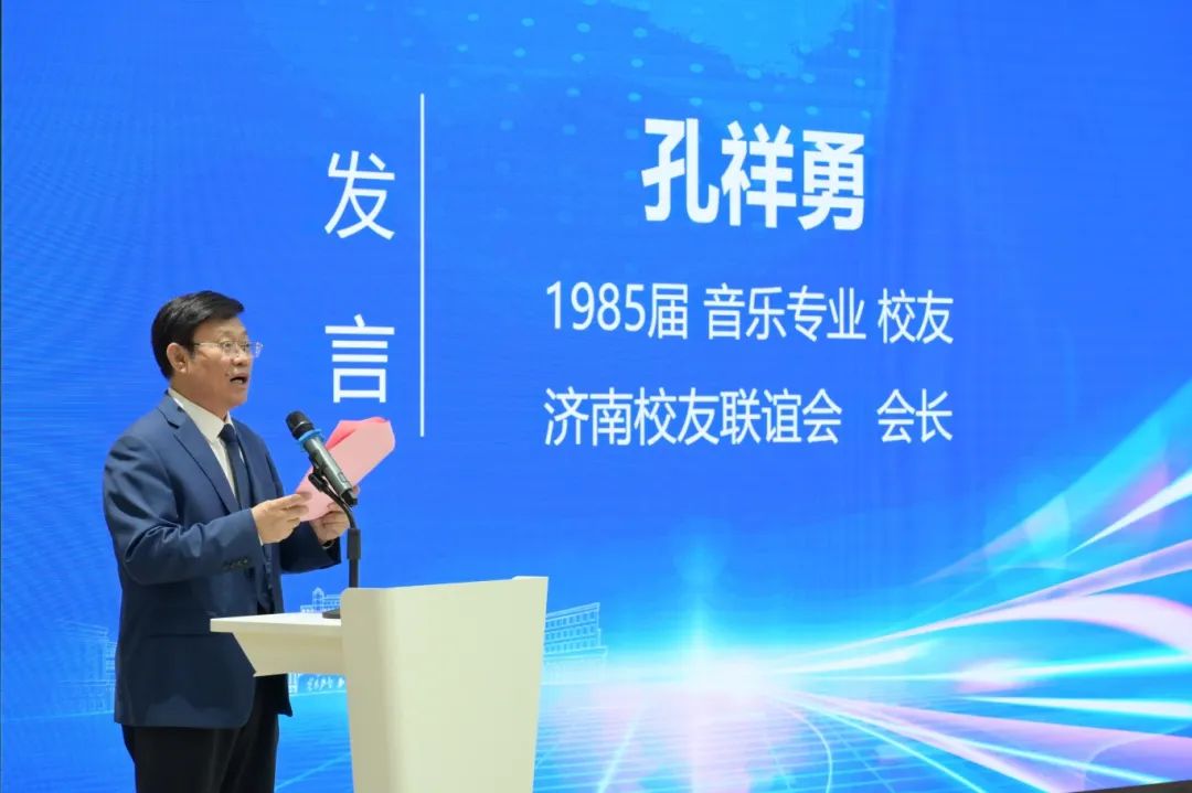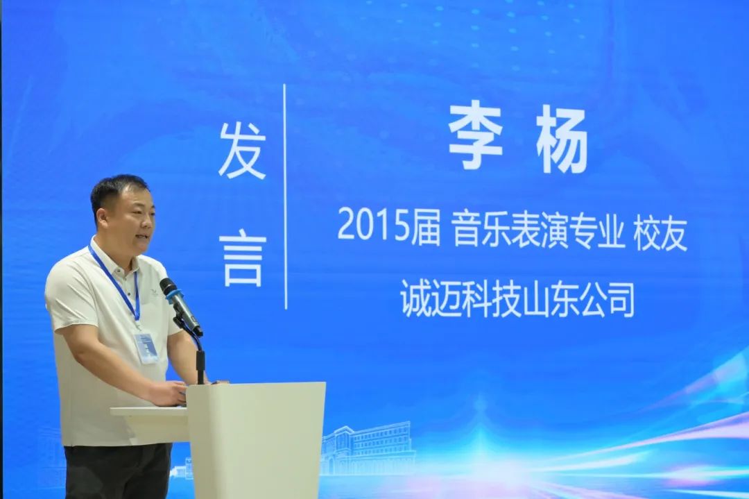 在校级高质量发展论坛中,太阳成集团tyc151cc校友代表积极发声。1985届音乐专业校友、济南校友联谊会会长孔祥勇作为地方联谊会代表,结合艺术教育领域经验,围绕太阳集团与产教融合建言献策。2015届音乐表演专业校友、诚迈科技山东公司总经理李杨作为企业界代表,分享艺术与科技跨界融合的创新实践,并代表企业向学校捐赠校友基金,助力母校发展。