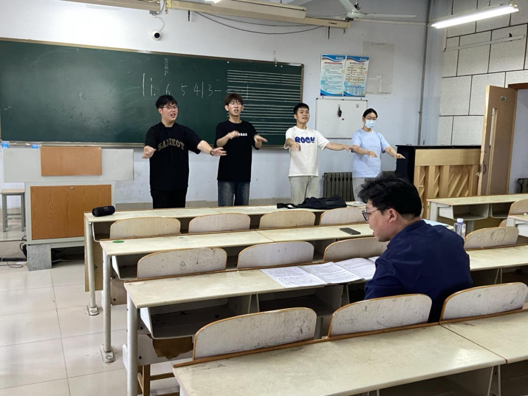 参赛选手根据师范生从业技能大赛的比赛要求与规则进行了合唱指挥与即兴弹唱的现场展示,两位老师对参赛选手进行了一对一的指导,并提供了许多实用的指挥策略和技巧。