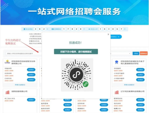 学生视频面试:学生手机扫码登录视频小程序,按向导完成视频面试。