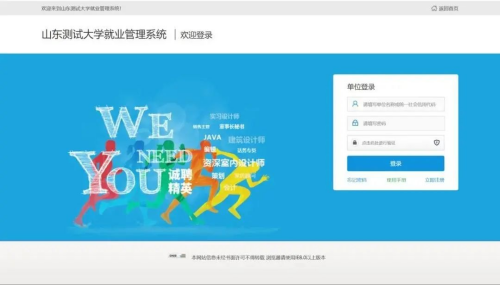 用人单位登录:就业网首页,点击单位登录,输入账户名、密码登录即可。