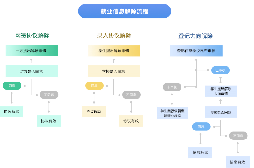 毕业生登记去向信息保存并提交审核后,可完成解约。