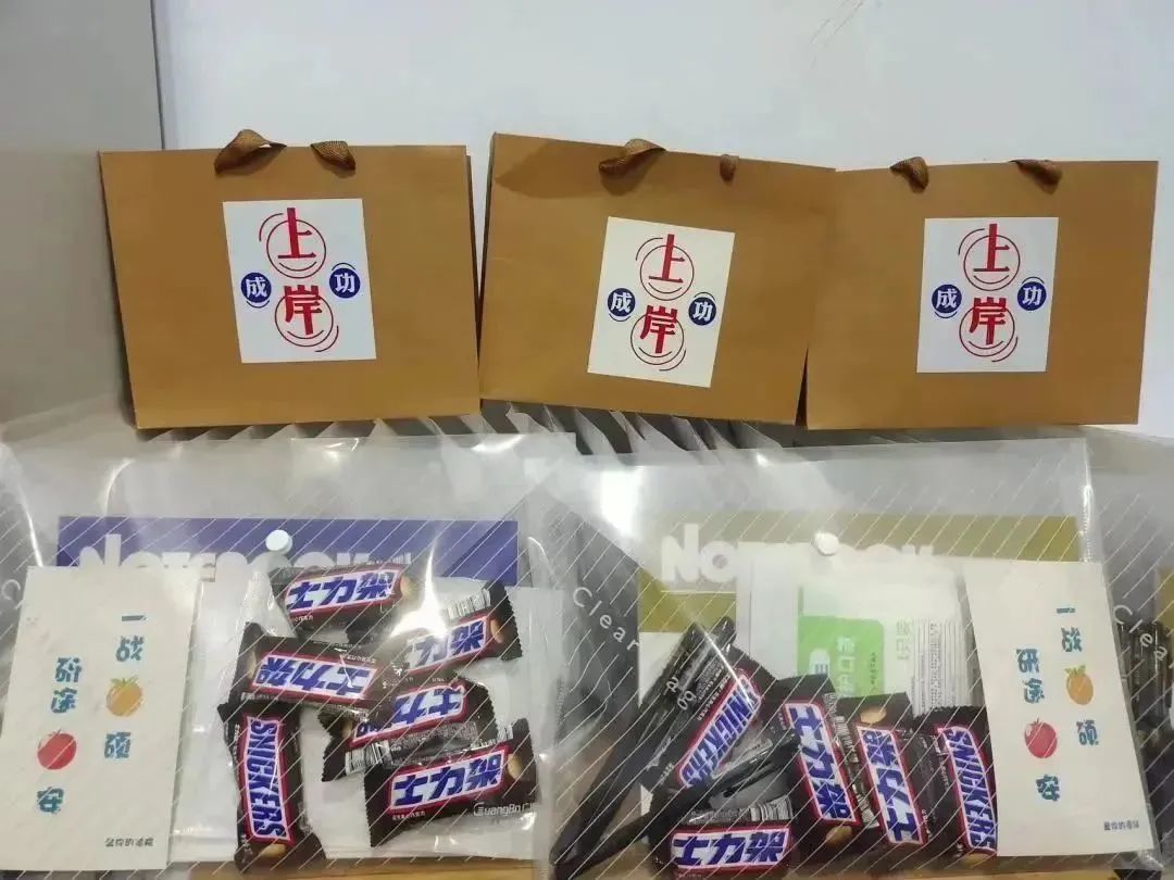 “考研暖心礼包”里装有:笔记本、中性笔、透明考试袋、n95口罩、酒精湿巾和士力架。贴心的礼物和深切的祝福,让身处紧张备考状态的考研学子,深刻感受到太阳成集团tyc151cc爱的浓厚。
