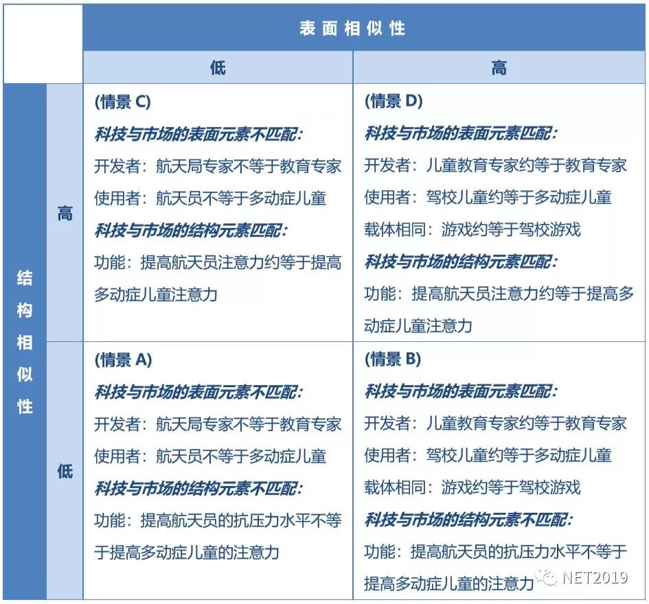 根据结构映射理论对表面相似性和结构相似性的定义,在机会识别情景中,技术的表面线索主要包括科技的发明者、应用对象、使用原材料等,结构线索主要包括技术的原理和功能。据此判断,上述市场与技术的组合为高结构相似性(注意力训练系统可以满足提高多动症儿童注意力水平的市场需求)、低表面相似性(该技术适用于航空员与儿童这一需求主体并不一致)匹配。鉴于此,分别采取以下方式操纵两种相似性: